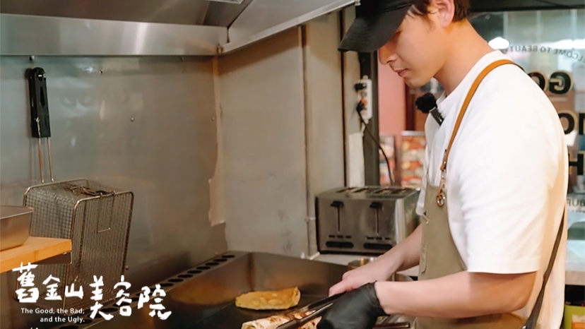 連晨翔為新劇《舊金山美容院》化身廚藝高超的早餐達人,特地到早餐店拜師學藝,挑戰製作劇中招牌料理「香菜豬血糕蛋餅」。